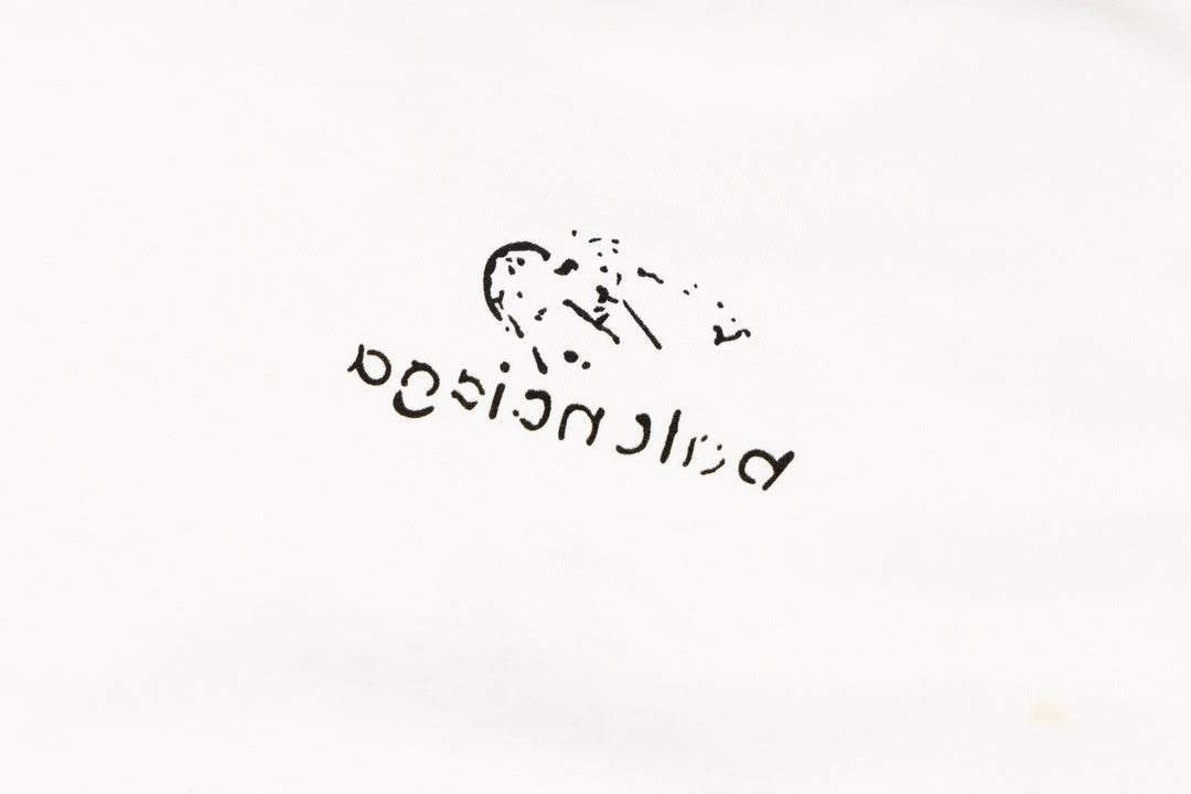 Esta camiseta apresenta um design exclusivo, com o logotipo da Balenciaga desenhado à mão em um estilo distintivo. O "3B" adiciona um toque de originalidade, enquanto o termo "Shrunk" sugere uma abordagem descontraída e casual.