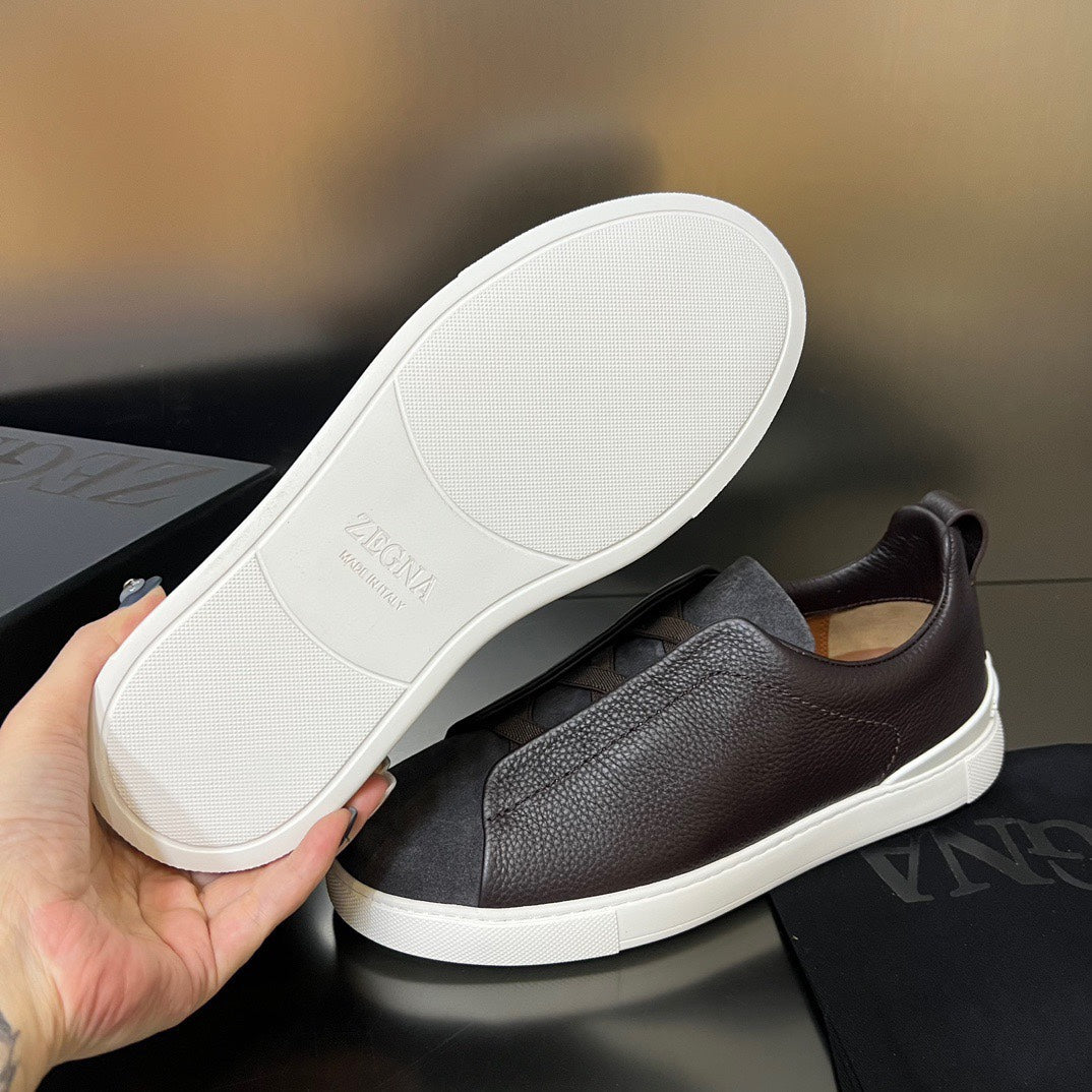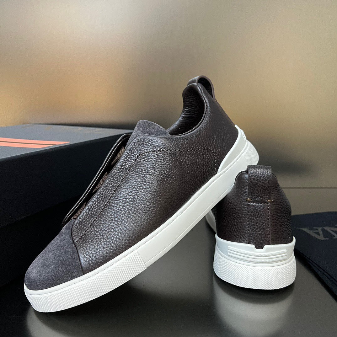 ZEGNA Triple Stitch Sneakers Dark Brown Suede